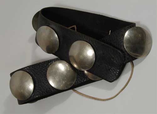 German silver, which is an alloy that contains no silver, was a favored metal of the Plains Indian tribes. The rings, bracelets and hair plates, which in turn became belt conchas, worn by the Kiowa, Comanche, Dakota, Cheyenne, Ute, Pawnee, Osage, etc., were of this thin metal. These silver discs were strung and worn by the Plains tribes as hair pieces, that is, they were tied to the hair and draped down the back of the head. Sometimes the sizes of the discs were graduated and other times they were the same. They also wore them draped down their side from the waist.