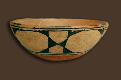 The bowl is in very good condition. It has been used for so long that most of the cream slip has been worn off on the interior, showing some of the original clay.