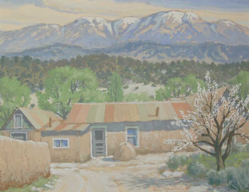 Von Hassler moved to New Mexico in the early 1920s and established his studio in Old Town Albuquerque. For 47 years, he painted New Mexico scenes and became an Albuquerque legend. Almost everyone living in Albuquerque in the 1920s through the 1960s knew him and had a story they could relate about him.