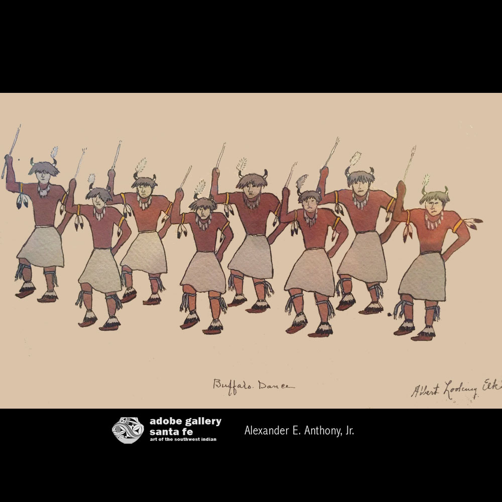 Provenance: this Albert Looking Elk Original Painting titled "Buffalo Dance" is from a private New Mexico collection