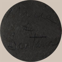 Adam, Maria's and Julian's oldest son took over the responsibilities of his dad and helped his mom with the heavy work of pottery production. Adam's wife, Santana, also began helping Maria at that time. Maria would make the pottery and Santana would do the painting. These early pottery were signed Marie & Santana and this signature continued from 1943 until 1956. Their cooperative efforts continued but around 1956, the signature changed to Maria & Santana—an indication that Maria finally decided to use her real name Maria and not Marie that she had been using previously. This occurred following the publication of the book Maria, the Potter of San Ildefonso by Alice Marriot.