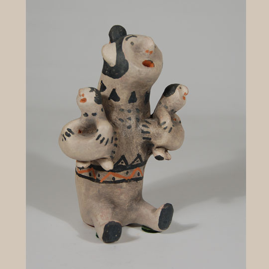 Damacia Cordero was a legend from Cochiti Pueblo. Her storyteller figurines and animal creations were unlike any other potter's work. This storyteller figurine, possibly a male, has the elongated torso, short legs, big ears, protruding nose and flat face of her traditional style.