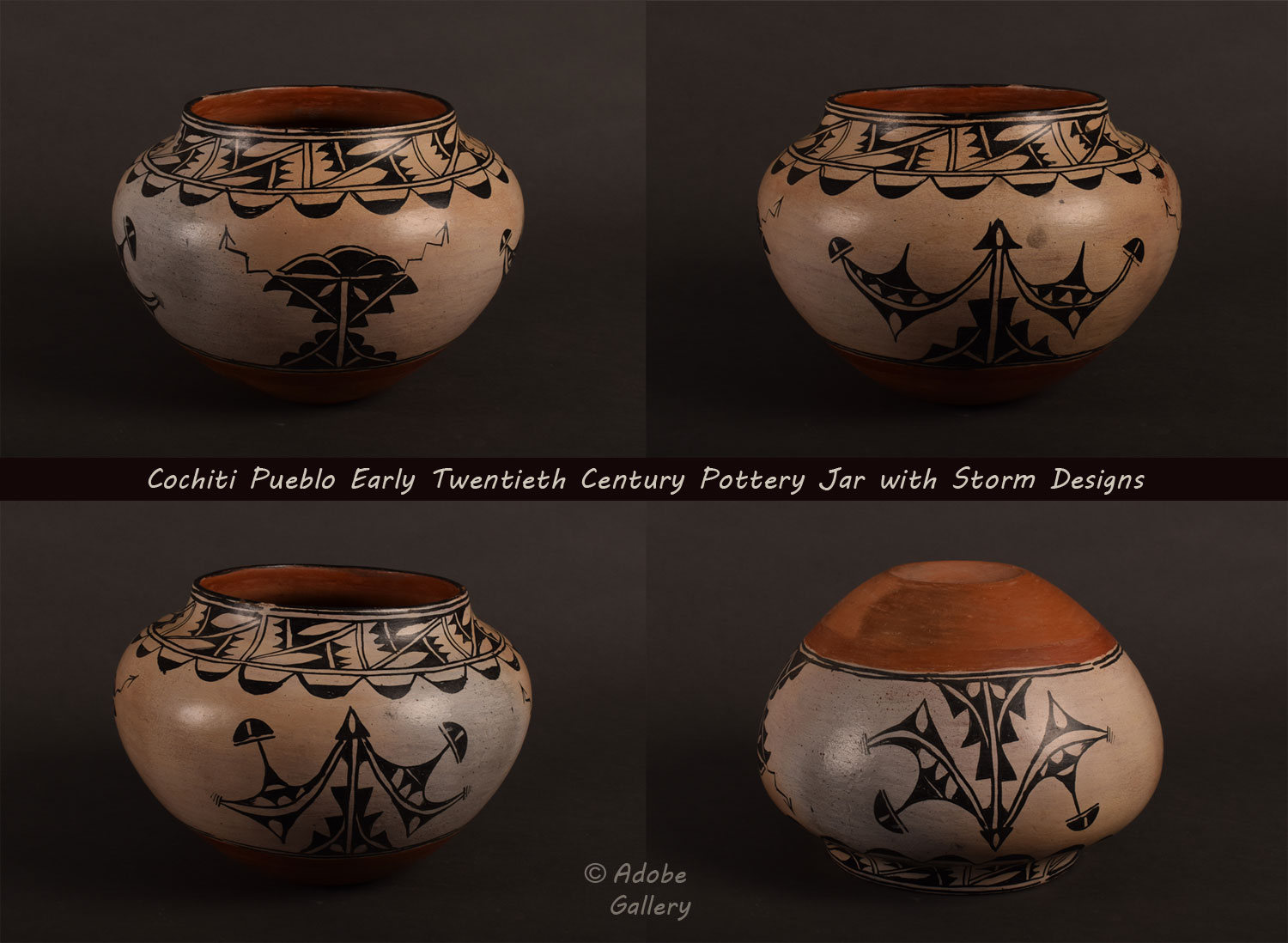 Provenance: this Cochiti Pueblo Early Twentieth Century Pottery Jar with Storm Designs is from a private New Mexico collection