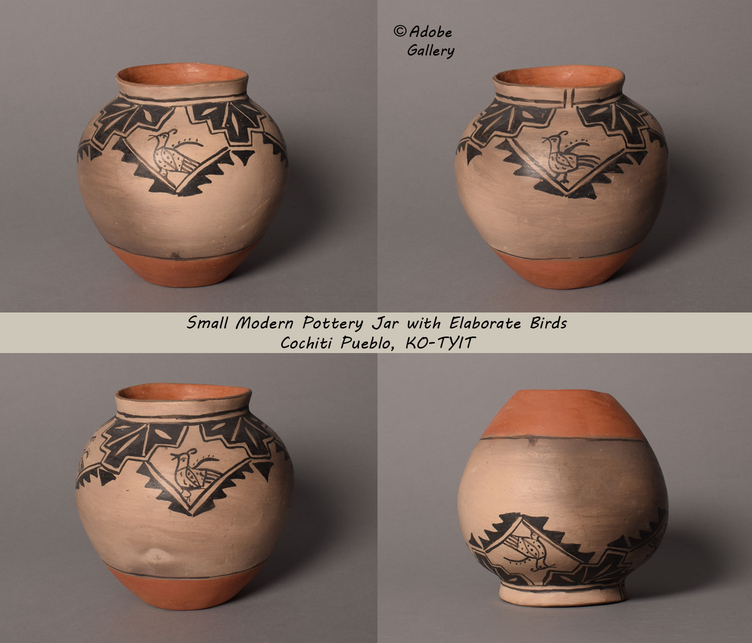 Provenance: this Cochiti Pueblo Small Pottery Jar with Elaborate Birds is from a client of Adobe Gallery from Arizona