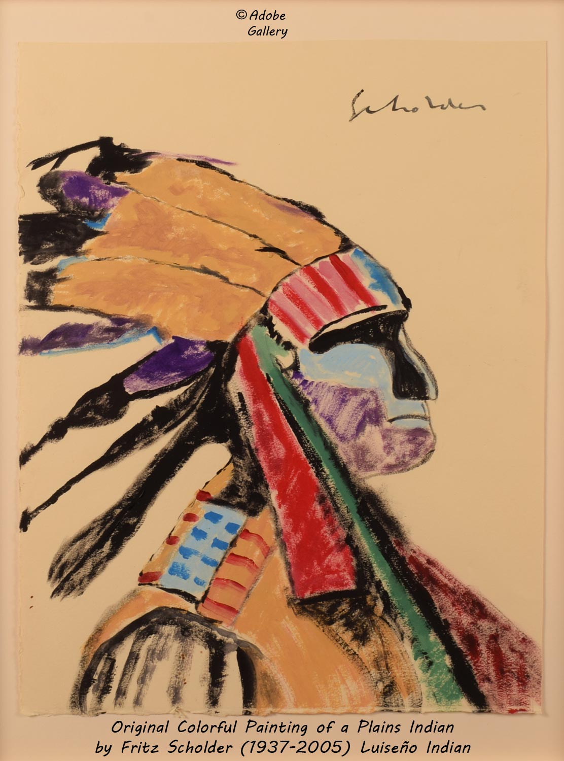 Provenance: this Fritz Scholder Original Colorful Painting of a Plains Indian is from a client of Adobe Gallery