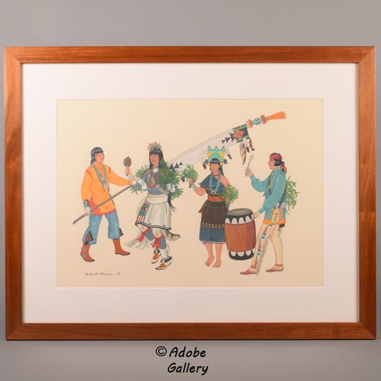 Provenance: this Gilbert Atencio Painting of a Tewa Harvest Dance is from a client of Adobe Gallery