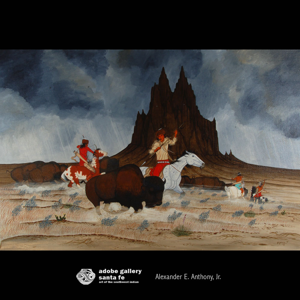 Provenance: this painting of a Group of Diné Men on a Buffalo Hunt is from a gentleman in Albuquerque