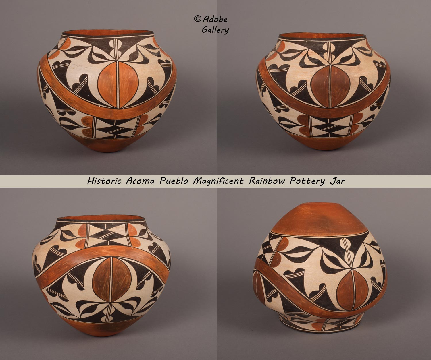 Provenance: this Acoma Pueblo Magnificent Rainbow Designed Pottery Jar is from the collection of a resident of Santa Fe.