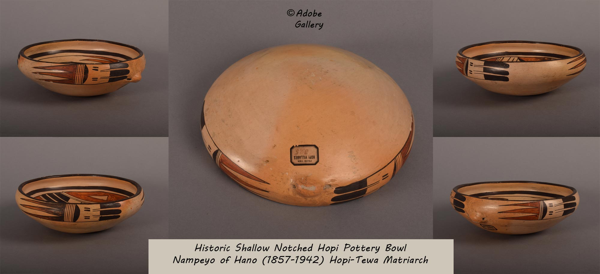 Provenance: this Historic Shallow Notched Pottery Bowl by Nampeyo of Hano is from the collection of a Santa Fe resident