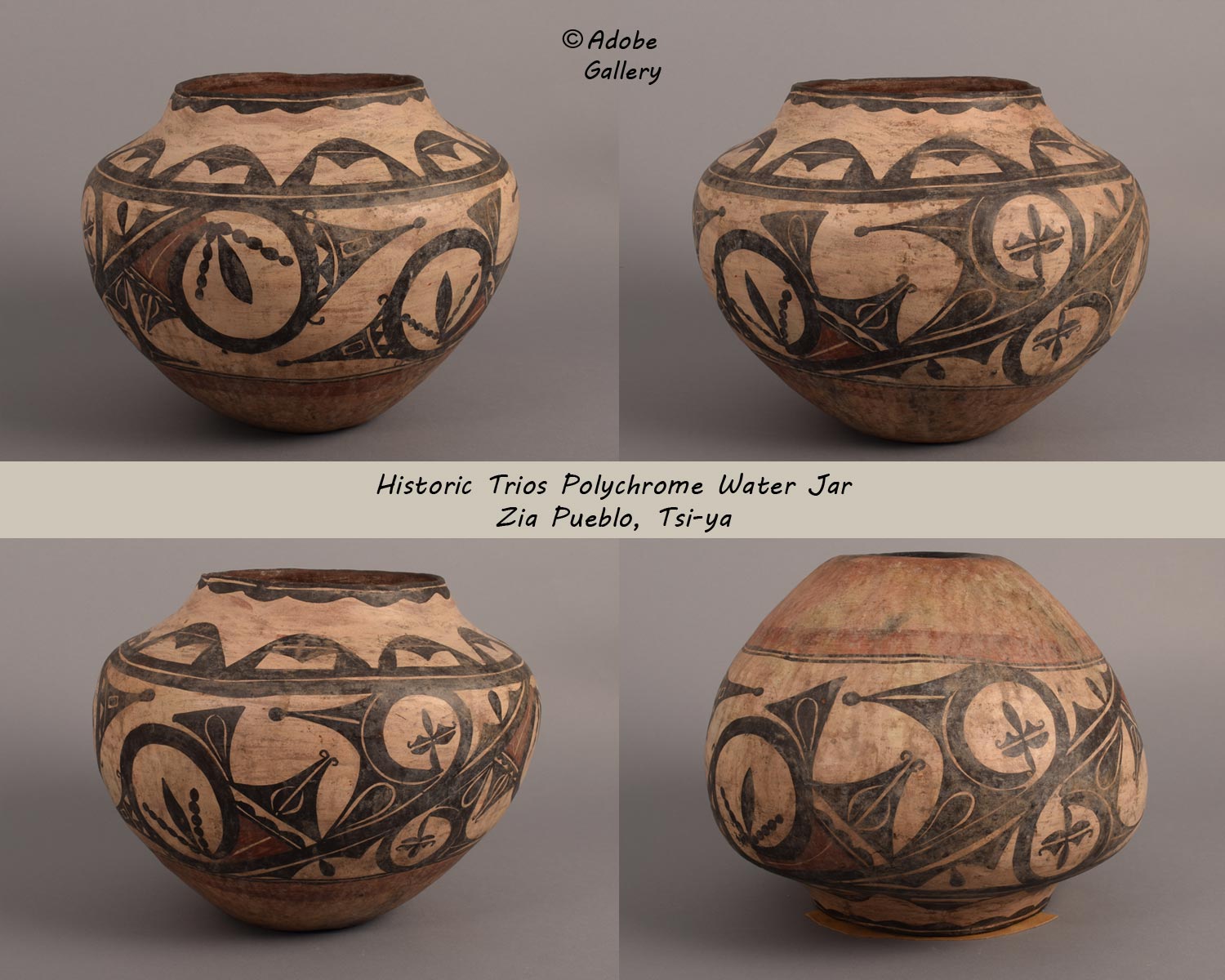 Provenance: This Historic Zia Pueblo Trios Polychrome Water Jar is from a client of Adobe Gallery.