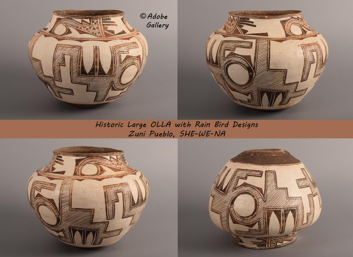 Provenance: this Historic Zuni Pueblo Large OLLA with Rain Bird Designs is from the collection of a client of Adobe Gallery