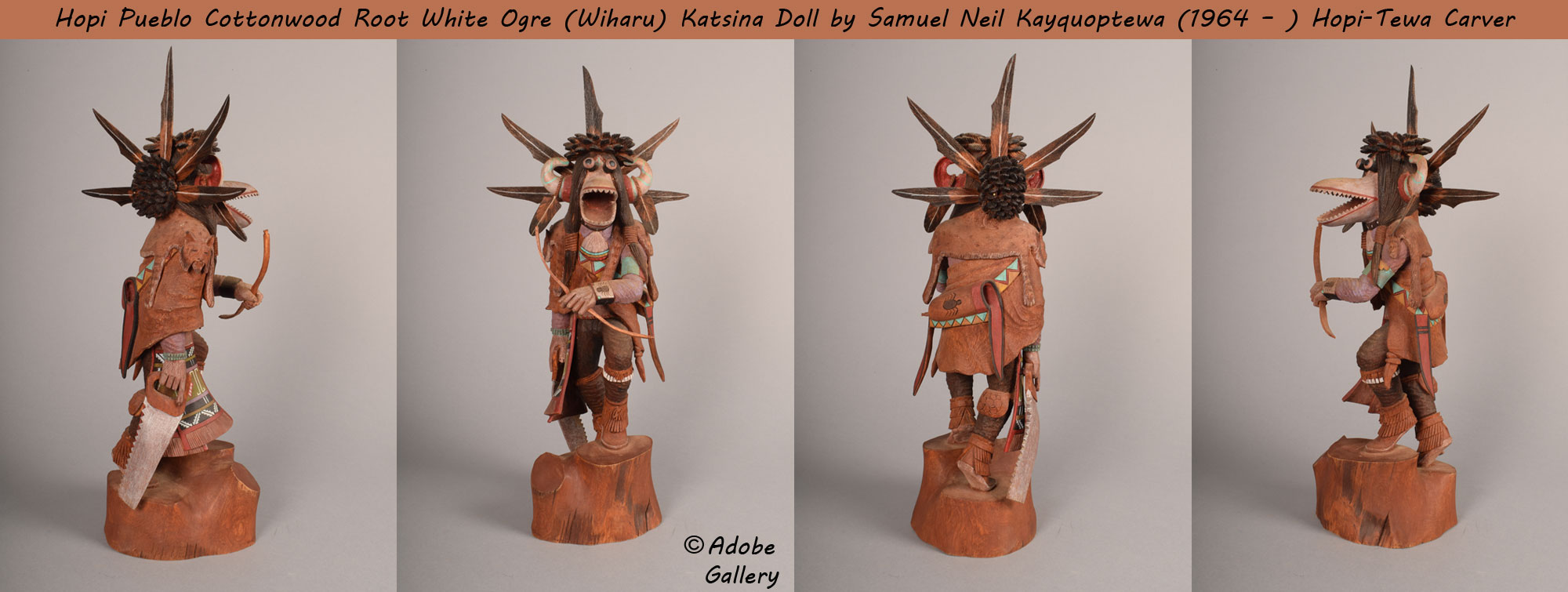 Provenance: this Hopi Pueblo Cottonwood Root White Ogre (Wiharu) Katsina Doll is from the estate of the client to whom we sold this in 2013