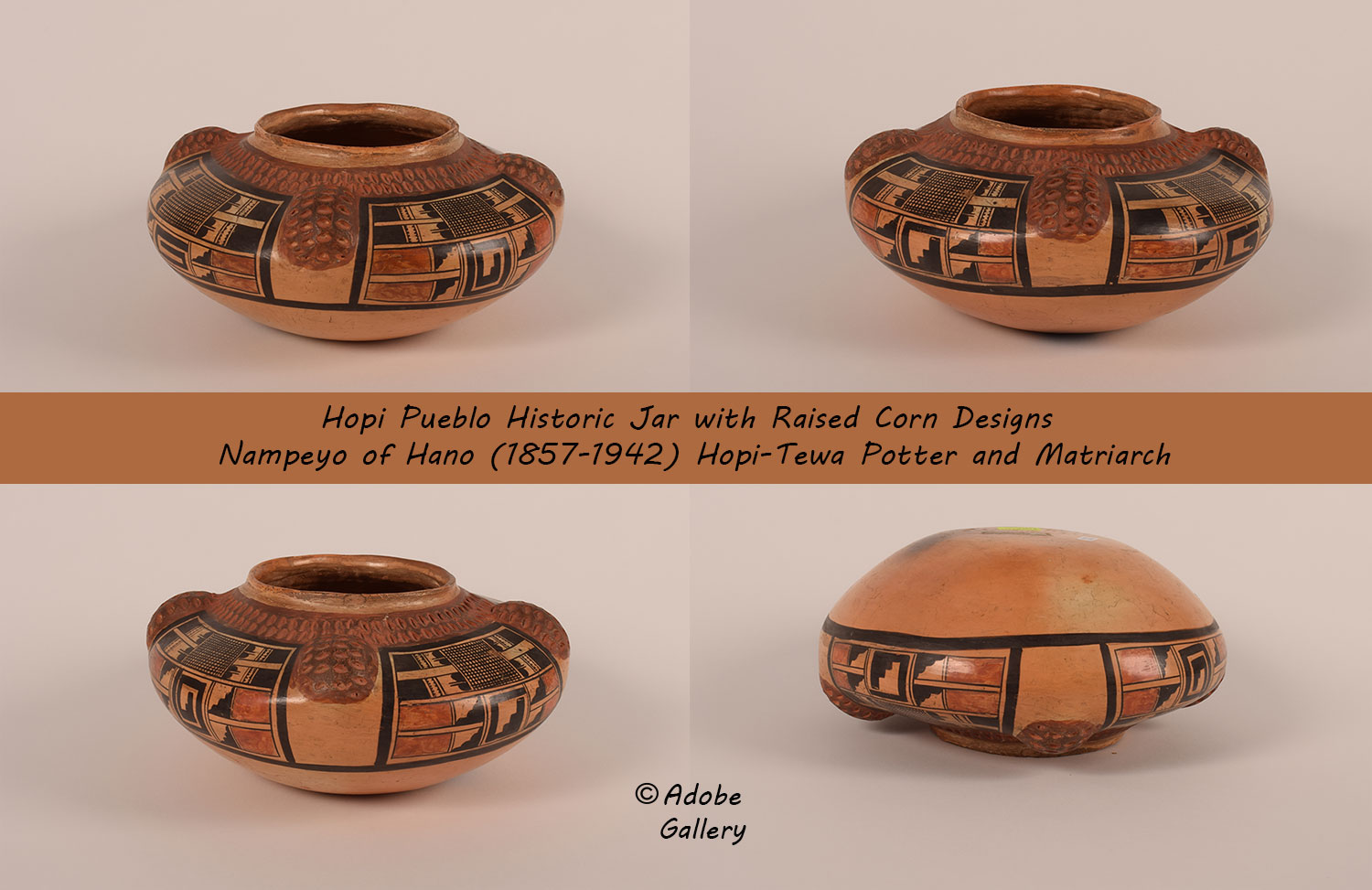 Provenance: this Historic Jar with Raised Corn Designs by Nampeyo of Hano is from the collection of a client to whom we sold this previously