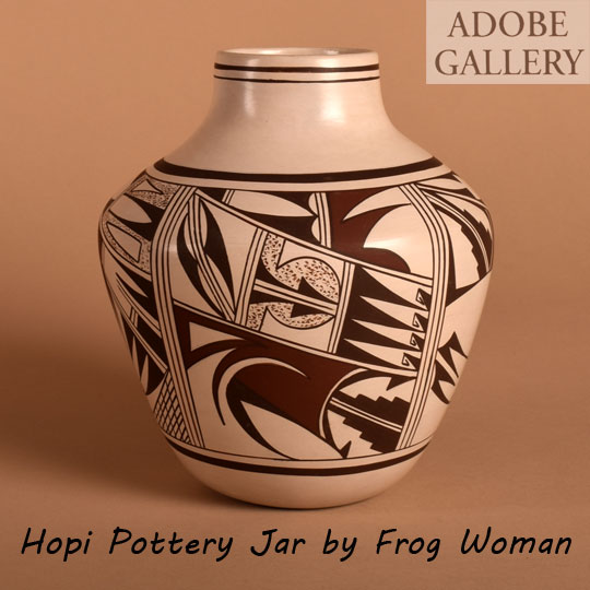 Hopi-Tewa Black and Red on White Pottery Jar by Frog Woman [SOLD]