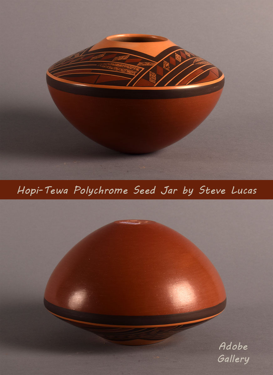 Provenance: this Hopi-Tewa Polychrome Pottery Seed Jar by Steve Lucas is from the estate of a previous client of ours who had impeccable taste and purchased accordingly.