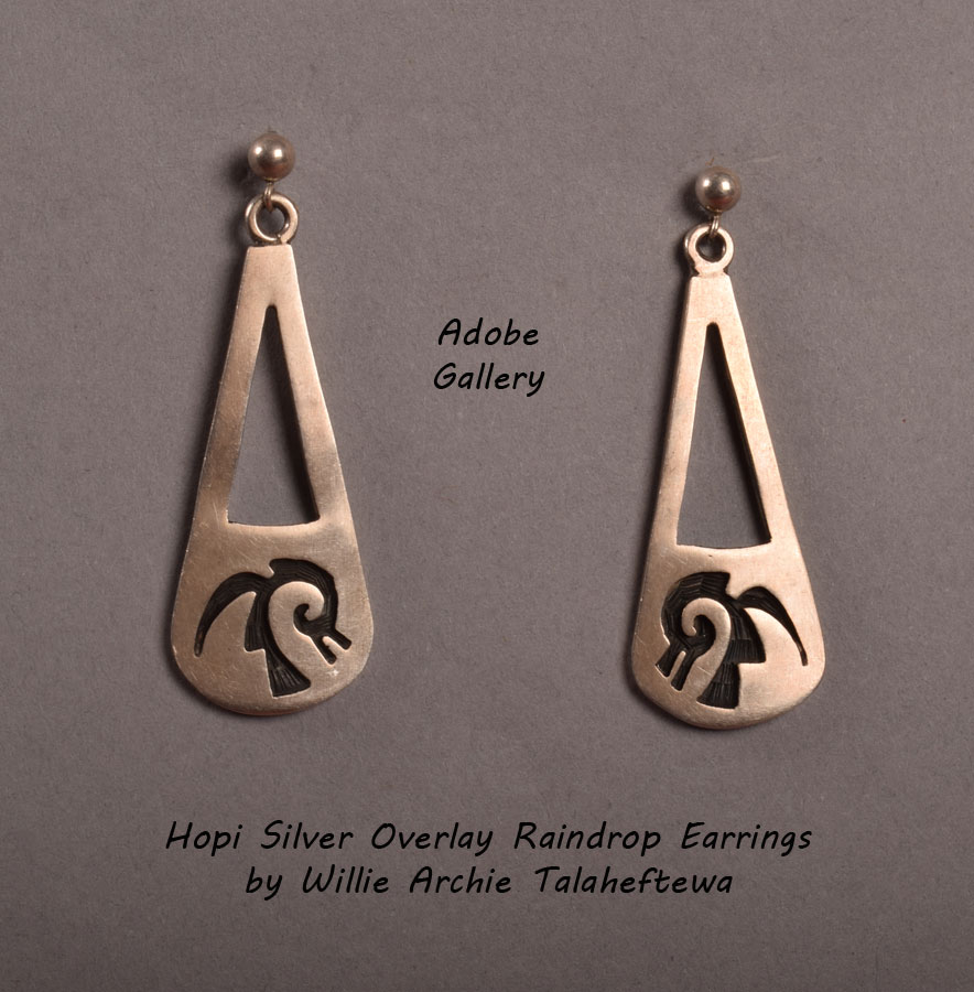 Provenance: this Hopi Silver Overlay Raindrop Earrings by Willie Archie Talaheftewa is from a resident of Colorado