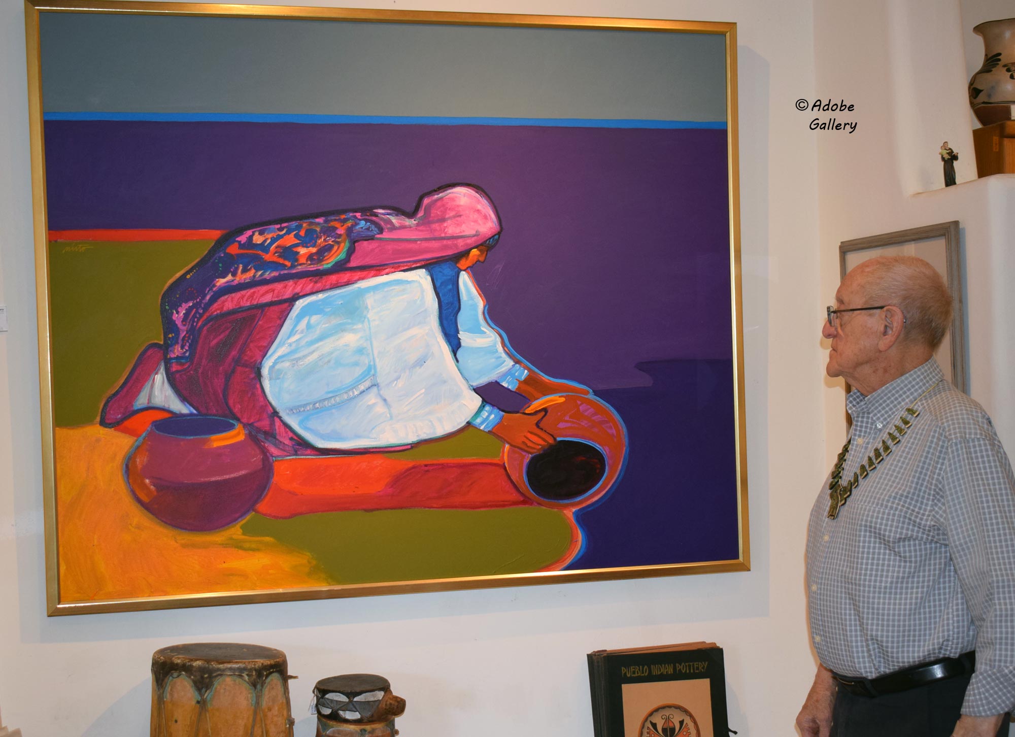 Provenance: this John Nieto Painting of a Pueblo Woman Getting Water in a Jar is from the estate of a resident of the Northwest who purchased it in 1985