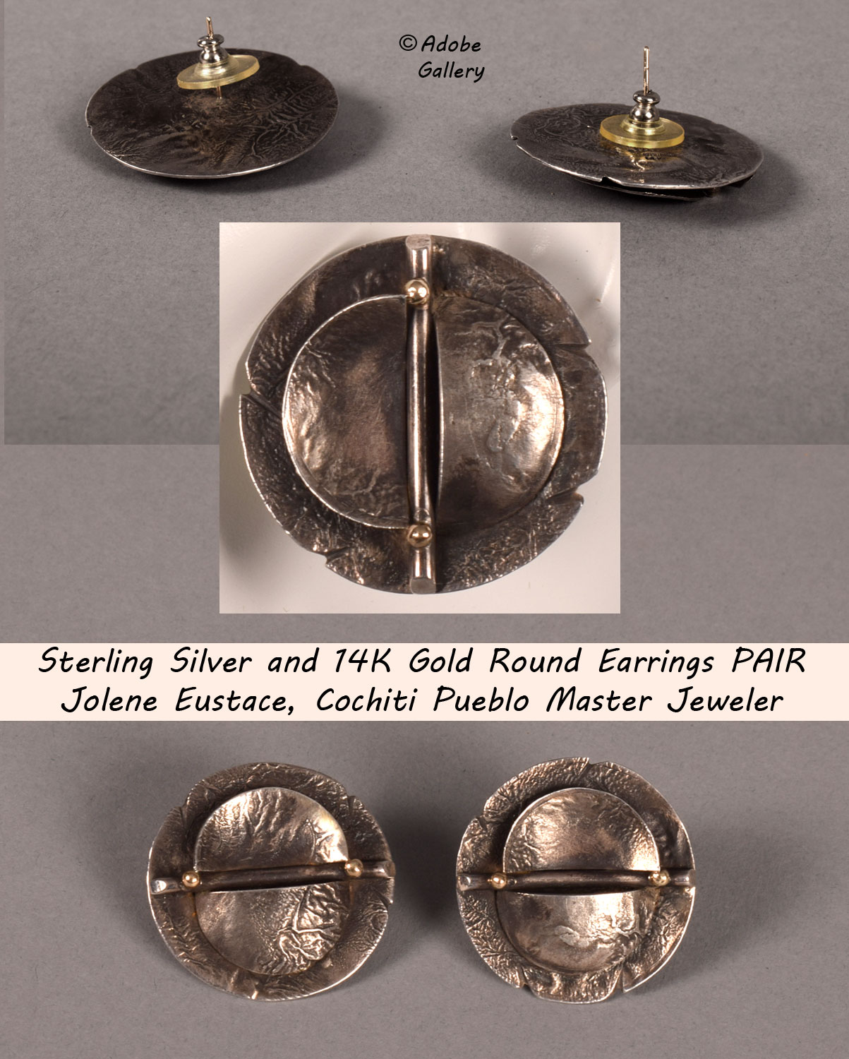 Provenance: this Jolene Eustace Sterling Silver and Gold Round Earrings PAIR is from the collection of a Santa Fe resident