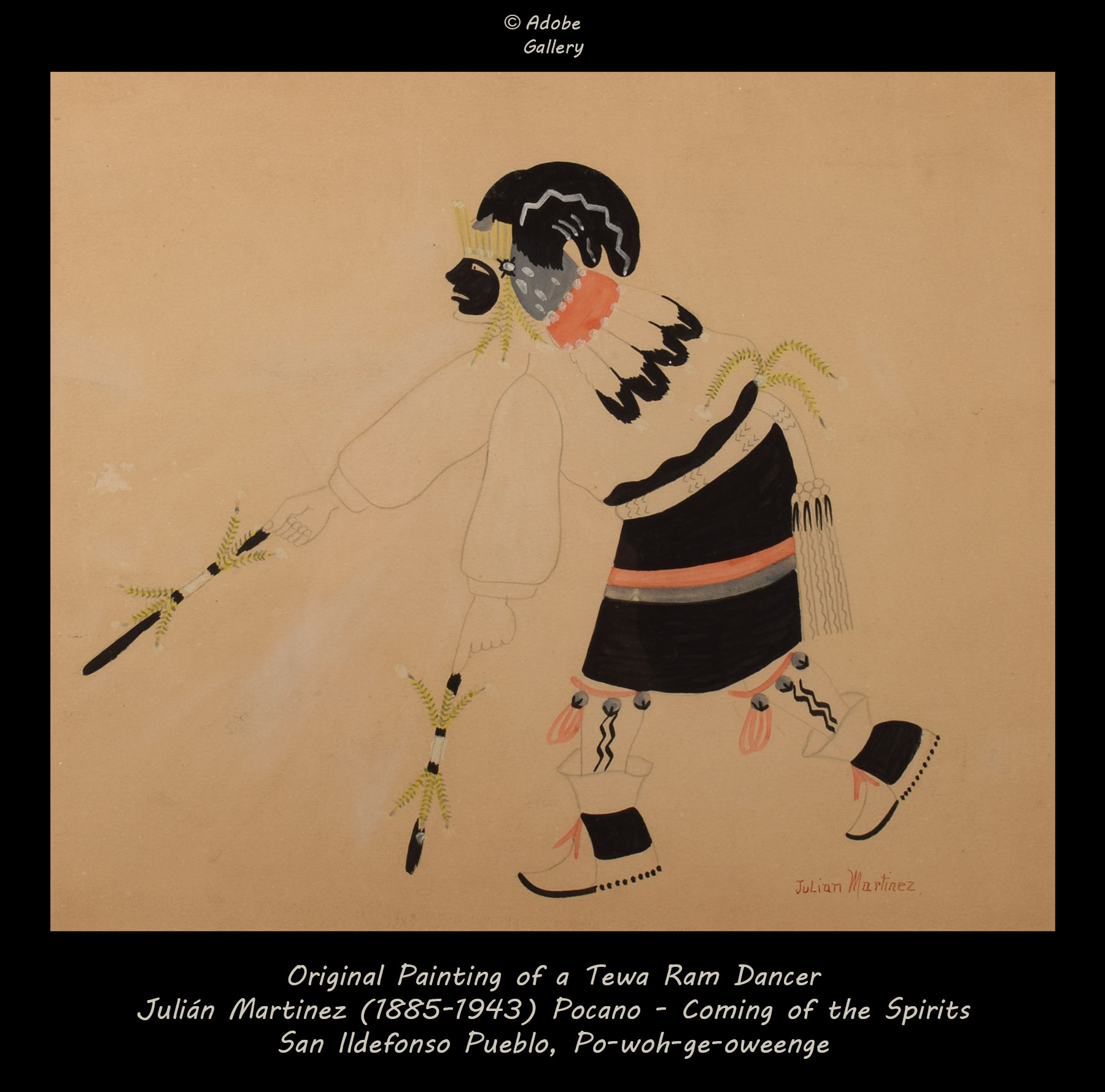 Provenance: this Julián Martinez Original Painting of a Tewa Ram Dancer is from a private New Mexico collection.
