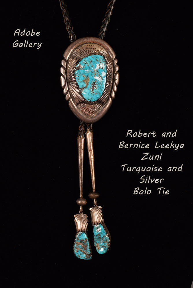 Provenance: This Robert and Bernice Leekya Zuni Turquoise and Silver Bolo Tie is from an estate in eastern Washington.