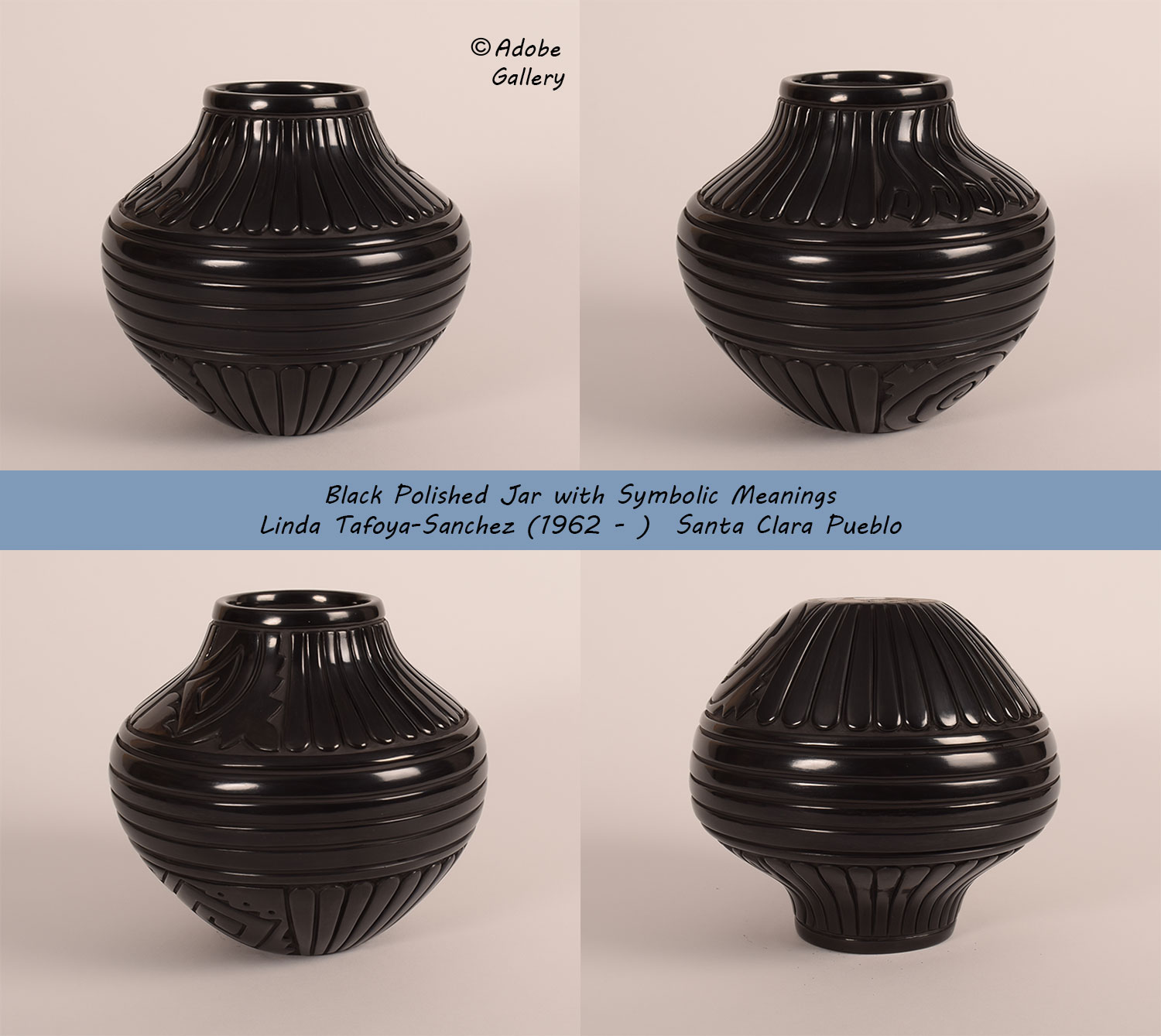 Provenance: this Linda Tafoya Sanchez Black Polished Jar with Symbolic Meanings is directly from the artist