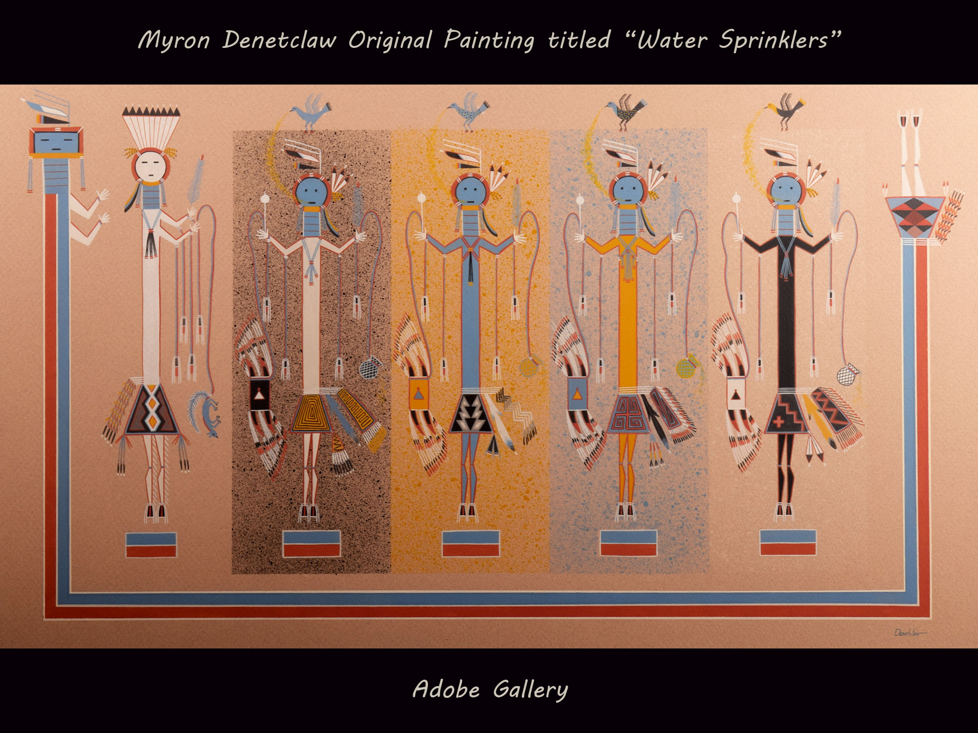 Provenance: this Myron Denetclaw Original Painting titled "Water Sprinklers" is directly from the artist