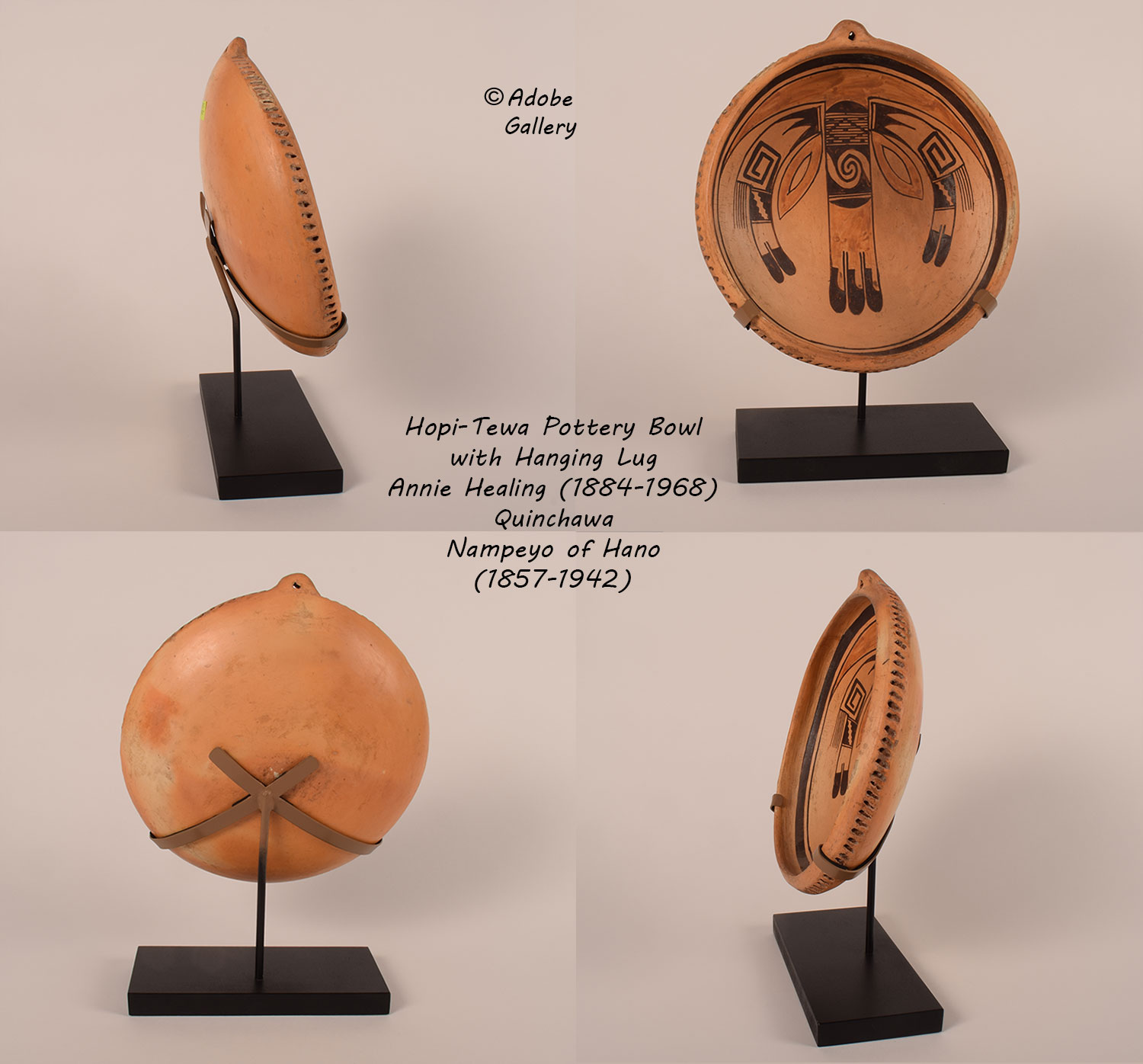 Provenance: this Nampeyo and Annie Hopi-Tewa Pottery Bowl with Hanging Lug was from a gentleman from New Mexico and then from a private Arizona collection