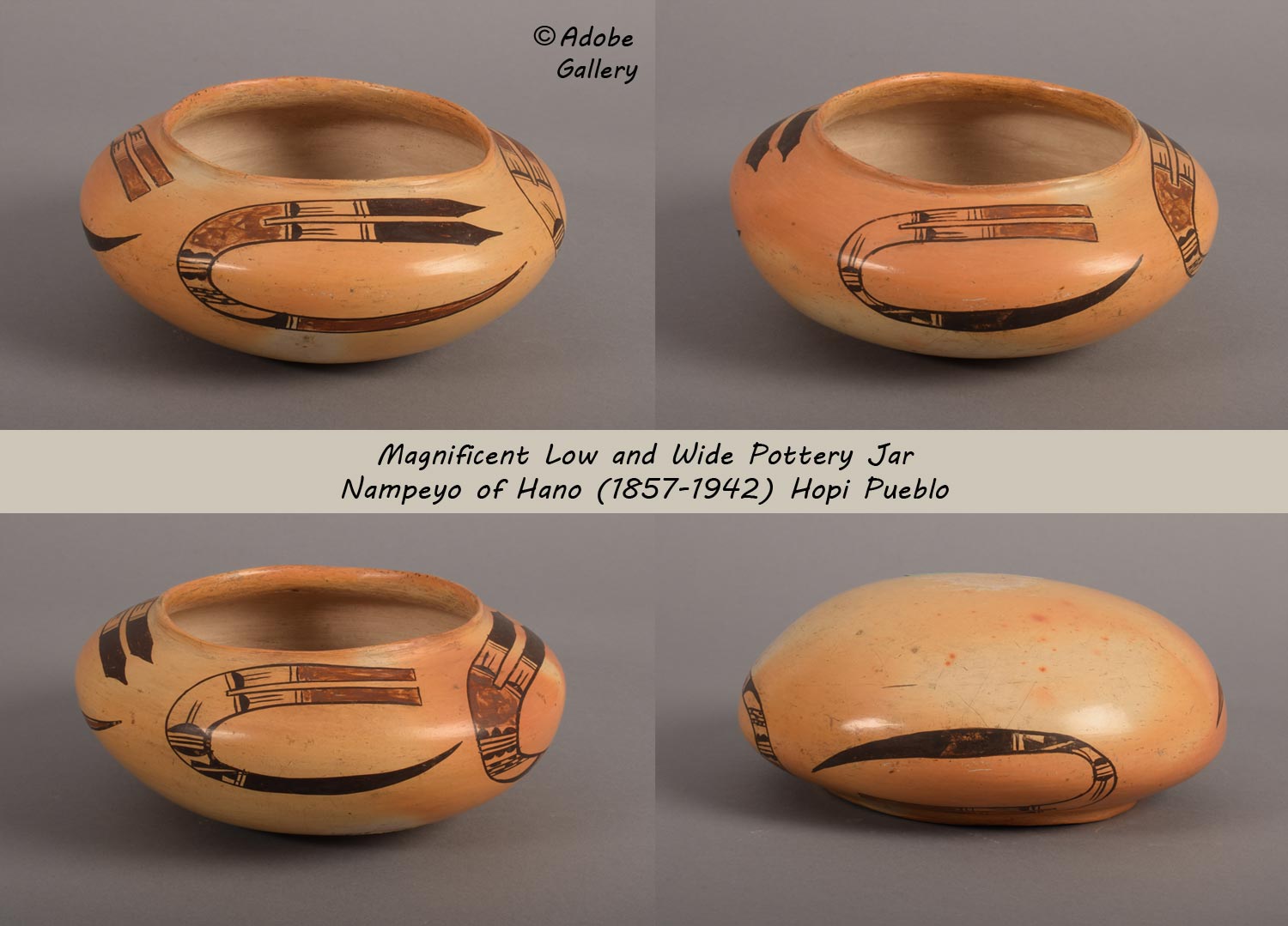 Provenance: this Nampeyo of Hano Magnificent Low and Wide Pottery Jar isfrom the collection of a client of Adobe Gallery