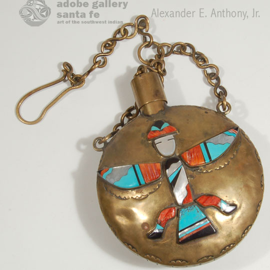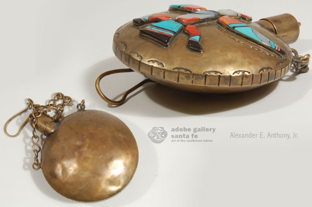 Provenance: this Navajo Brass Canteen with Zuni Knifewing Inlay is from the collection of a gentleman from Colorado