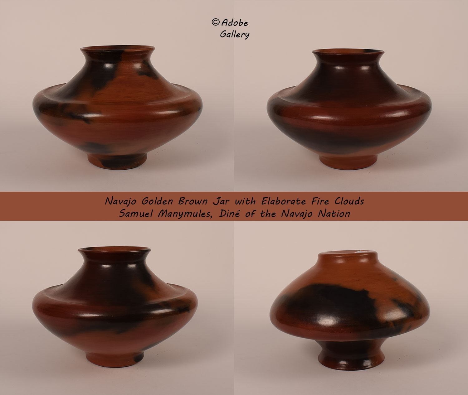 Provenance: this Navajo Golden Brown Jar with Elaborate Fire Clouds is from the collection of a California client