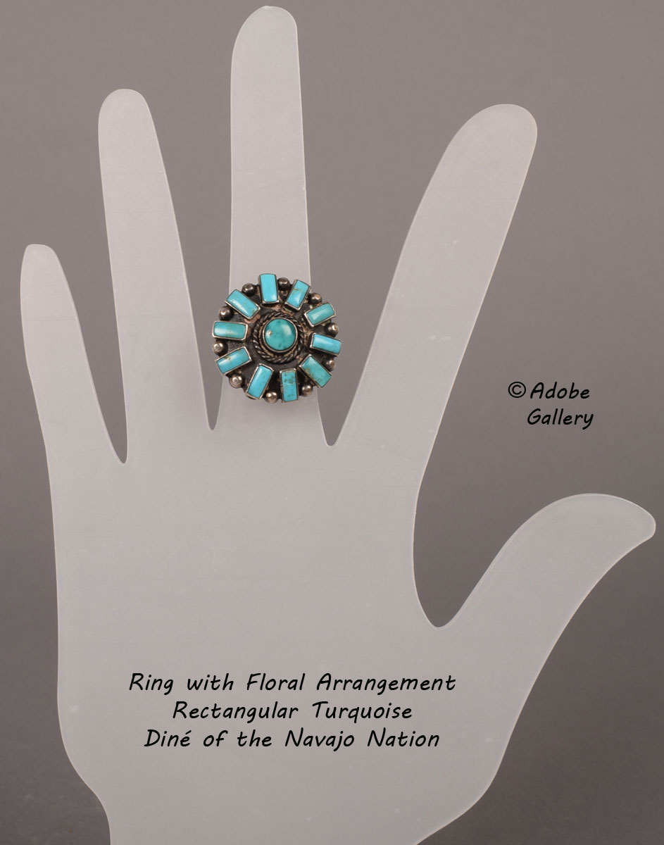 Provenance: this Diné Ring with Floral Arrangement Rectangular Turquoise is from the collection of a client