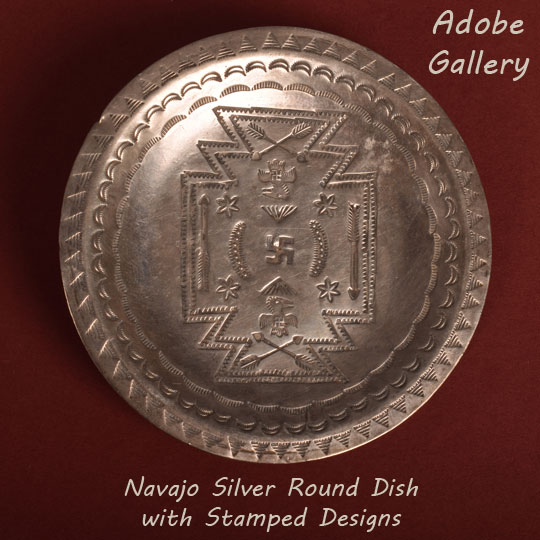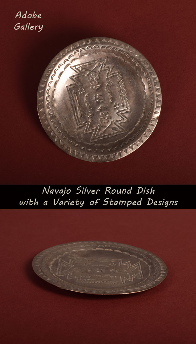 Condition: this Navajo Silver Round Dish with a Variety of Stamped Designs is in excellent original condition