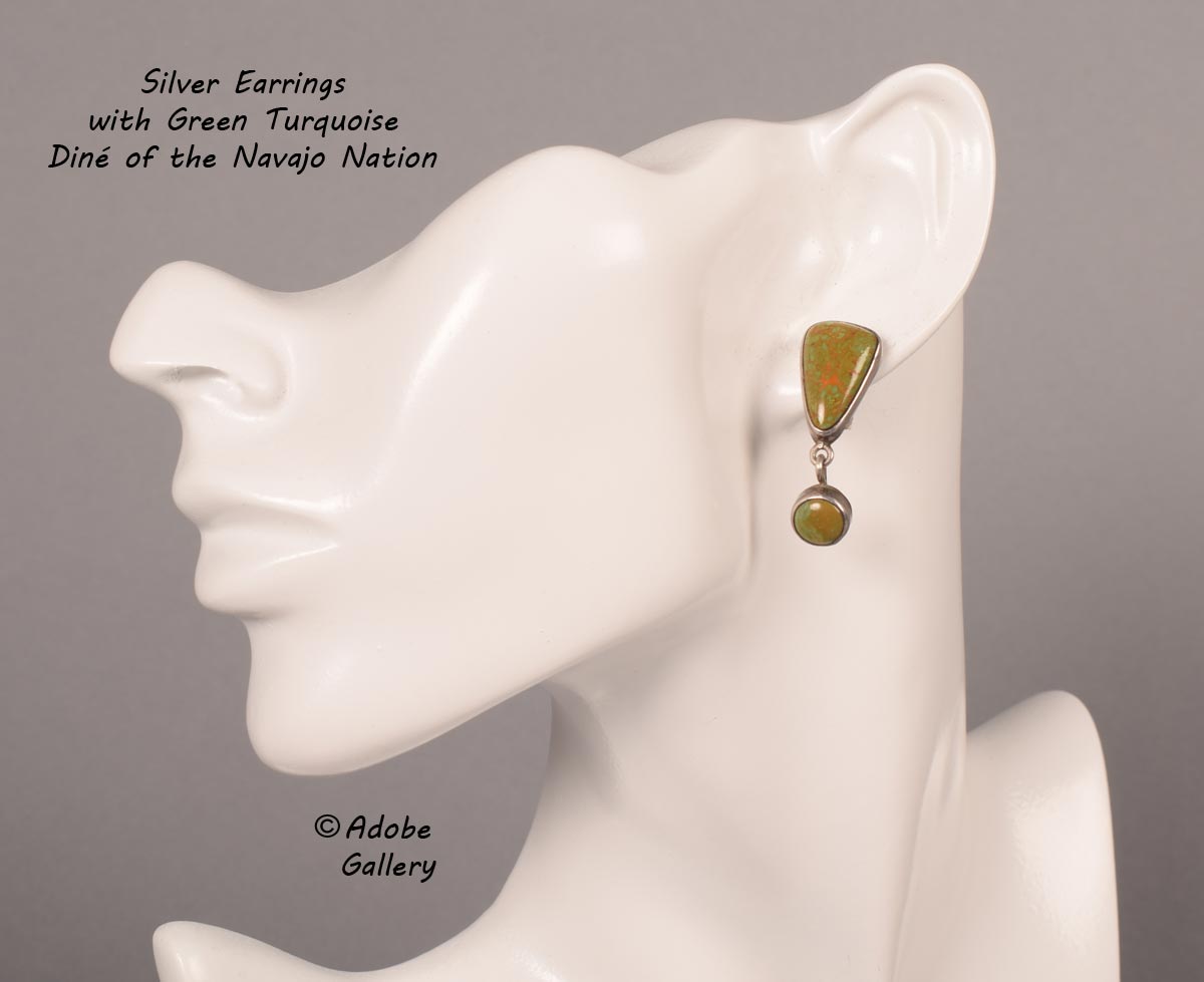 Provenance: this Diné Silver Earrings with Green Turquoise is from a private collection