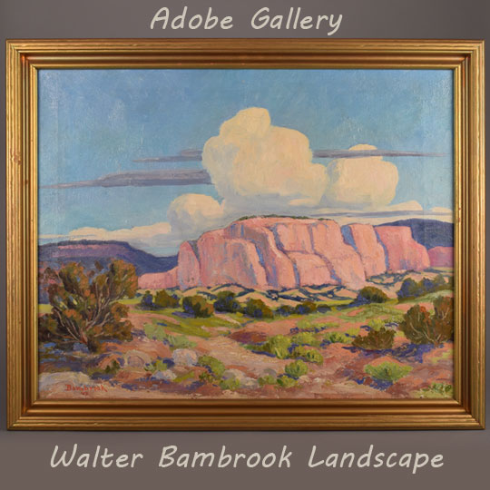 Walter Bambrook (1910-1984) was a painter who lived and worked in Albuquerque, New Mexico. He attended Albuquerque High School and began his art education at the University of New Mexico (UNM) under the instruction of Ralph Douglas. While at UNM, Bambrook served as a printer's apprentice for the Albuquerque Journal newspaper and began his four-year art training under Carl Von Hassler. After his formal art education was completed, Bambrook taught many private classes and groups at UNM, the Woman's Club and Heights Community Club.