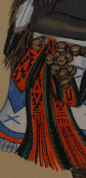 Tonita was fond of color and used it profusely. She nevertheless painted her figures accurately to the last detail and painted on a variety of materials—paper, wood, Masonite, and canvas, using oils, watercolor, casein, pen and colored ink. This painting of a male Buffalo Dancer appears to be casein on paper but has not been examined out of the frame.