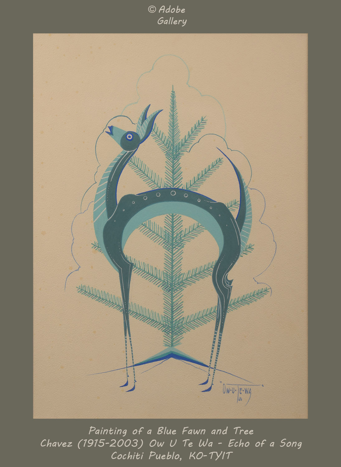 Provenance: this Painting of a Blue Fawn and Tree by Manuel Bob Chavez is from a client from Santa Fe