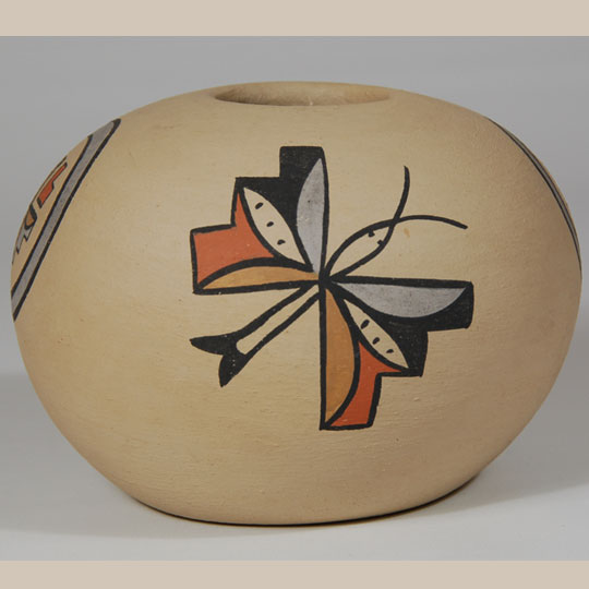 Mary Gutierrez is a member of the Talachy family of Pojoaque Pueblo but I have been unable to find any significant information regarding her. One would assume that she was related to Minnie Vigil and Lois Gutierrez because their style of pottery is similar in shape, design, and finish, but I can find no connection between them. This seed jar was most likely made in the 1960s as that is when most of the pottery in this collection was purchased.