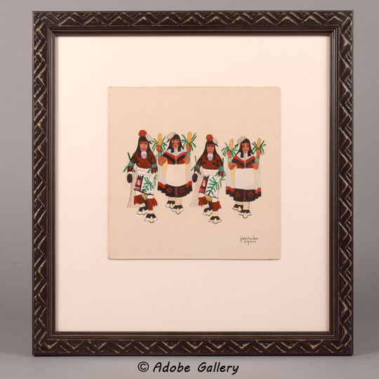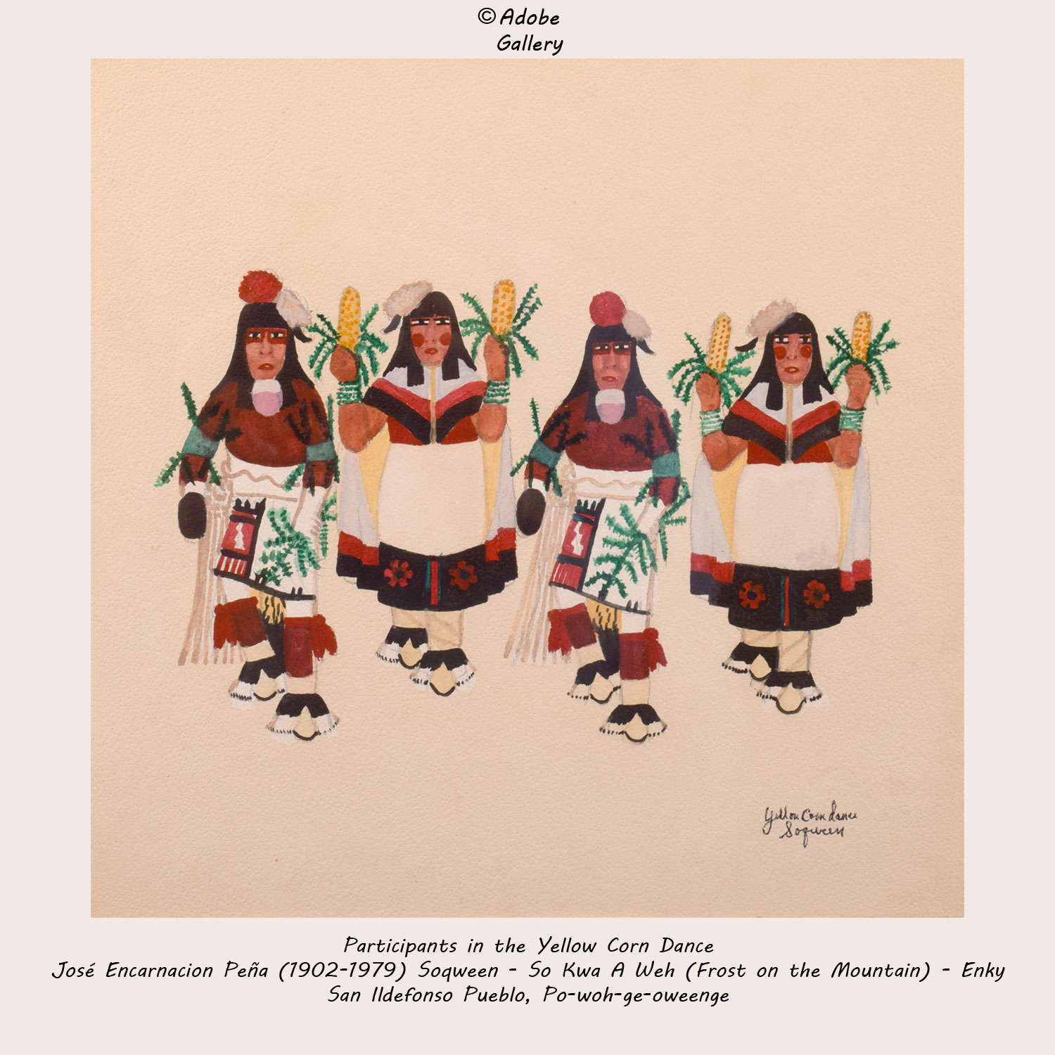 Provenance: this original painting of Participants in the Yellow Corn Dance by José Encarnación Peña is from a client of Adobe Gallery
