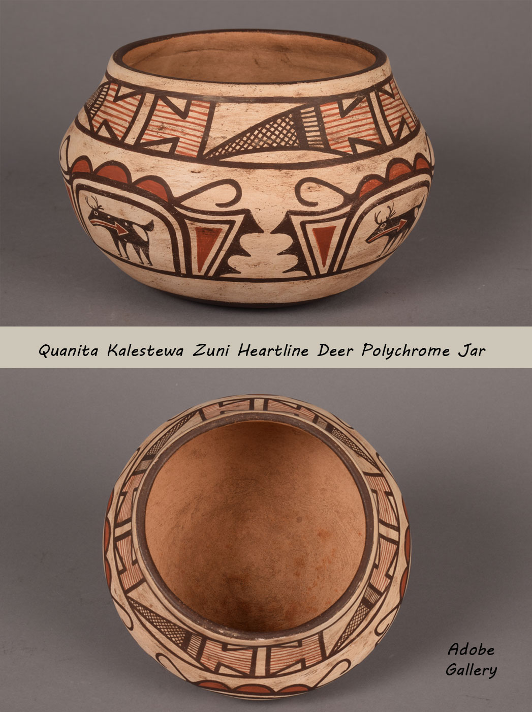 Provenance: this Quanita Kalestewa Zuni Heartline Deer Polychrome Jar is from the personal collection of a family who reside in New Mexico.