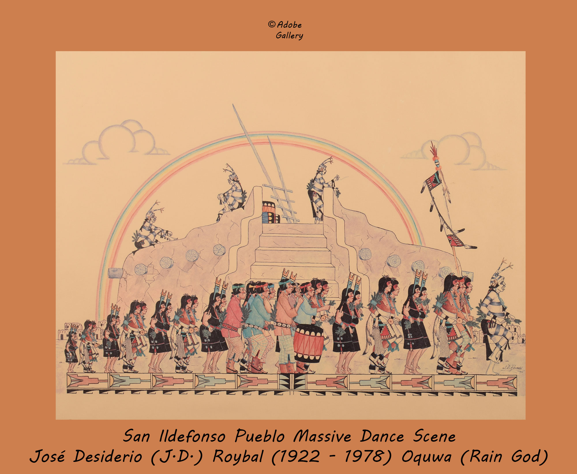 Provenance: this J. D. Roybal San Ildefonso Pueblo Massive Dance Scene is from a client of Adobe Gallery