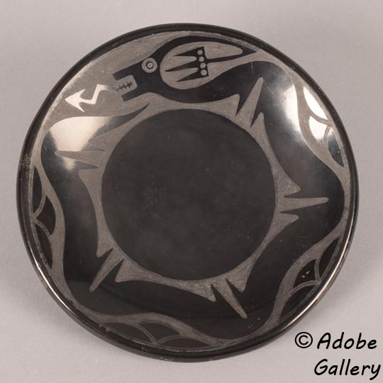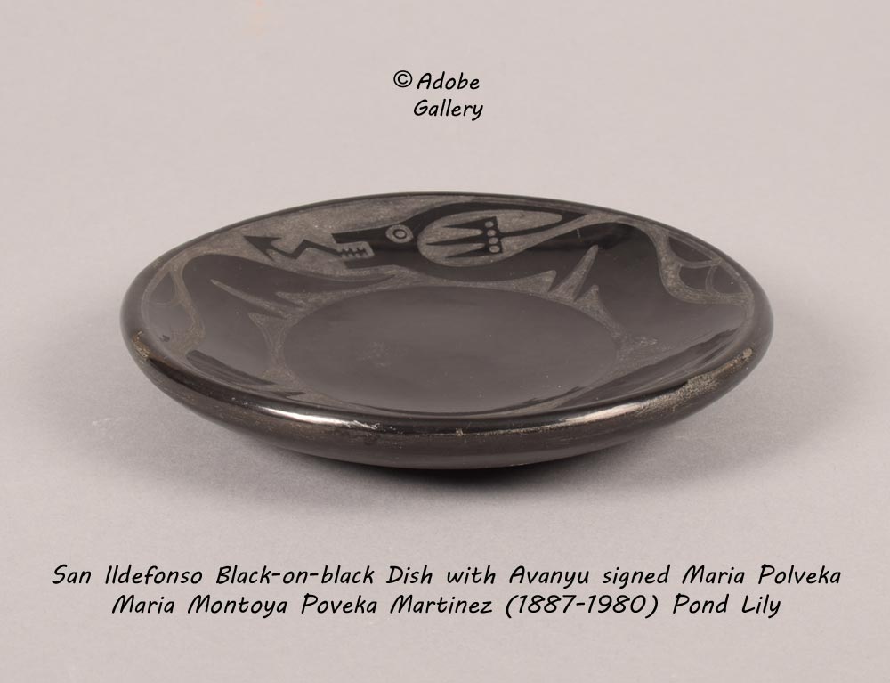Provenance: this San Ildefonso Black-on-black Dish with Avanyu signed Maria Polveka is from the collection of an Adobe Gallery client