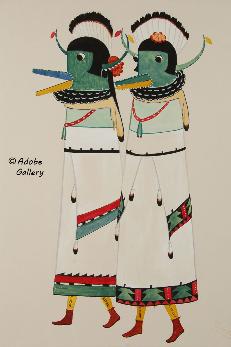 San Ildefonso Painting of Zuni Pueblo Shalako Figures by Tse Ye Mu