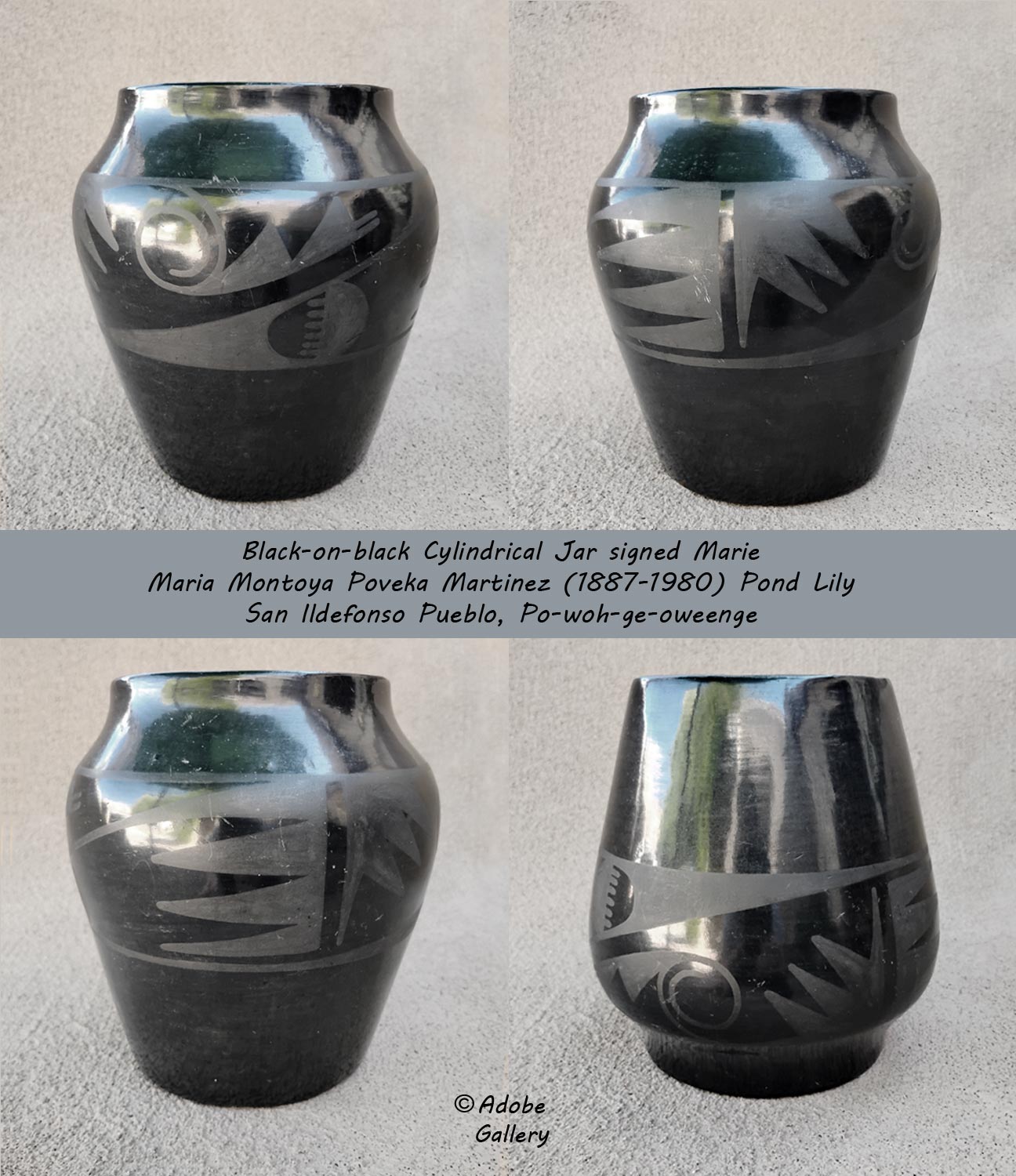 Provenance: this San Ildefonso Black-on-black Cylindrical Jar signed Marie is from the collection of a family from Oklahoma