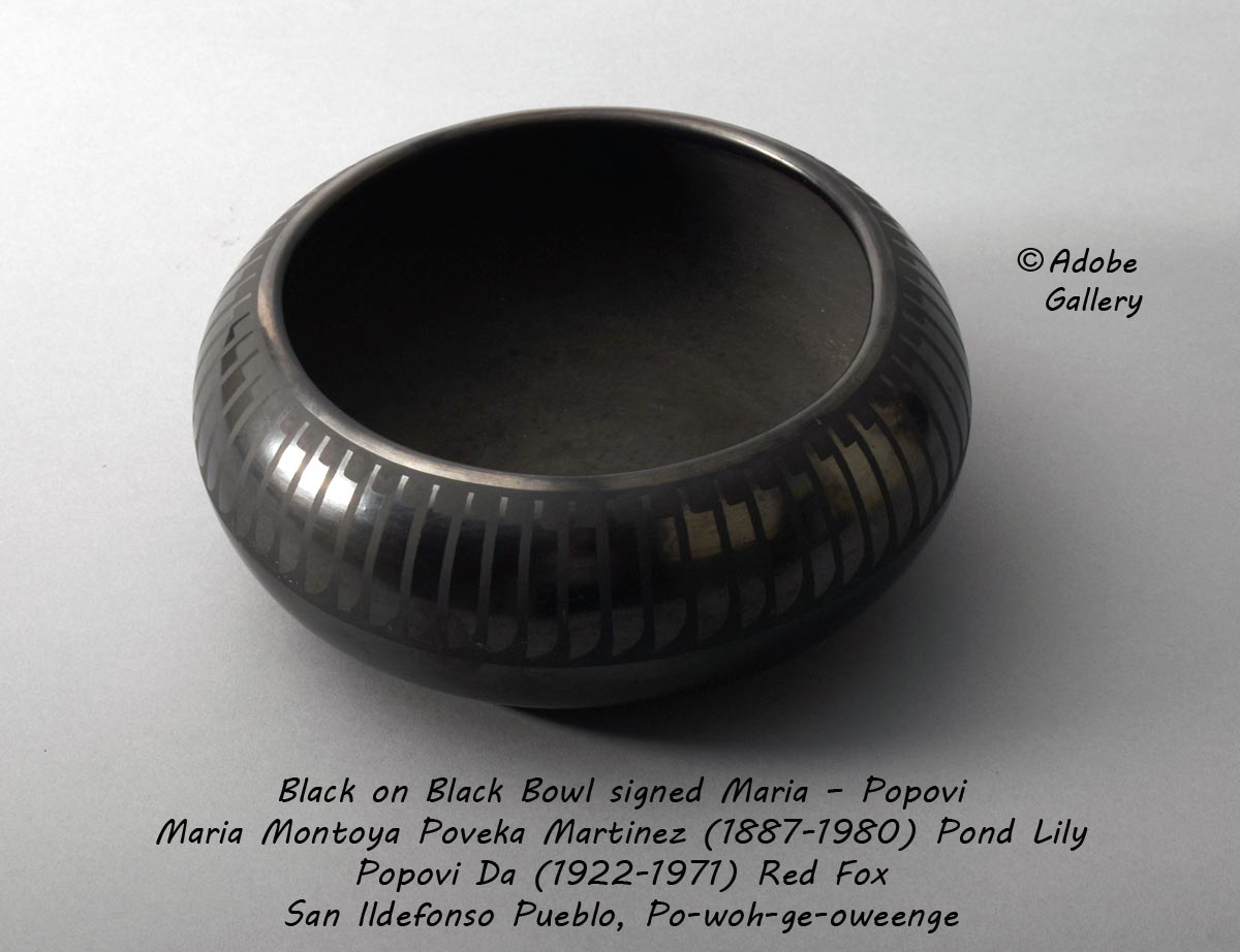 Provenance: this San Ildefonso Pueblo Black on Black Bowl signed Maria - Popovi is from the estate of the client to whom we sold this in 2011