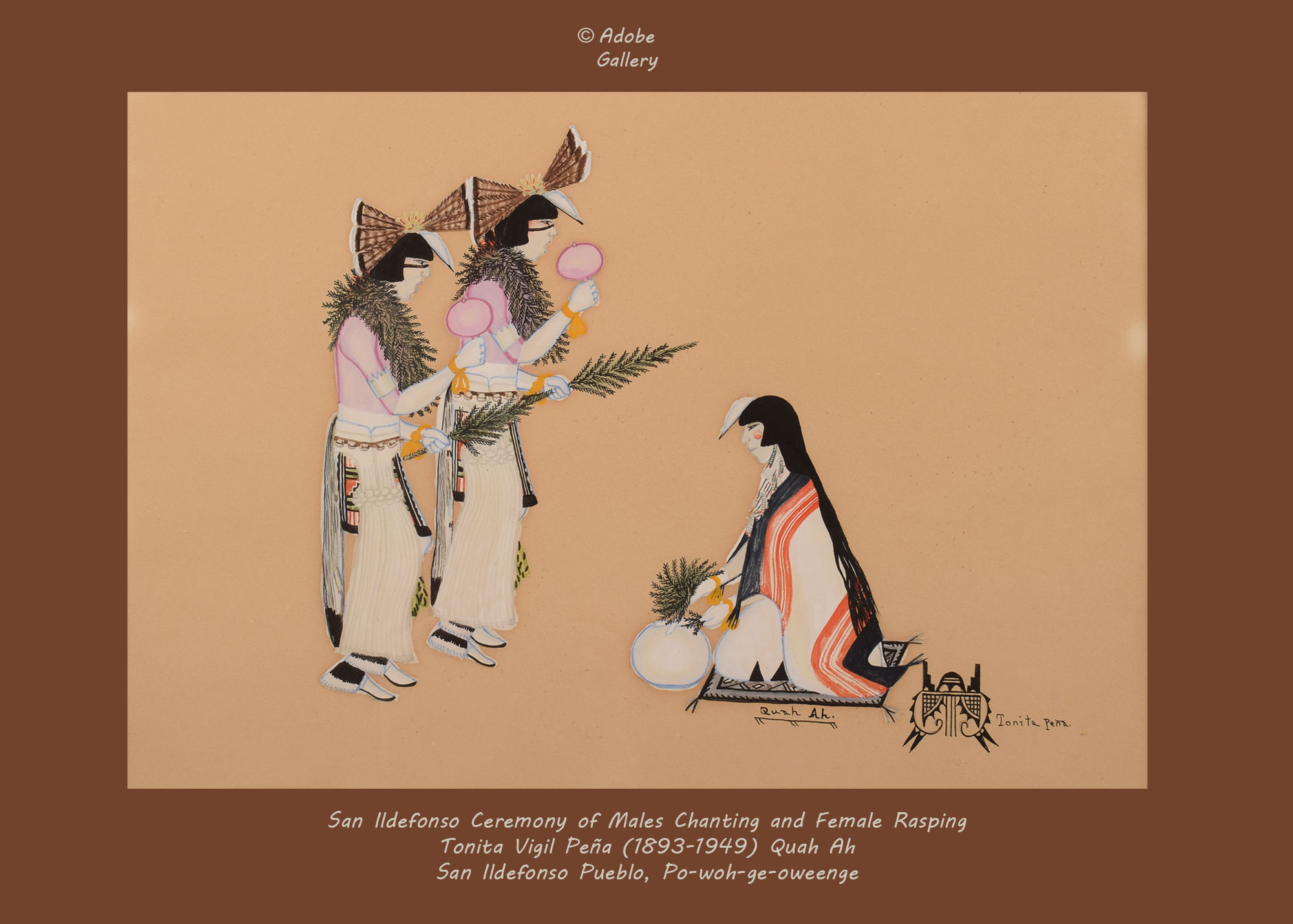 Provenance: this San Ildefonso Ceremony of Males Chanting and Female Rasping is from the collection of a client of Adobe Gallery from Wisconsin