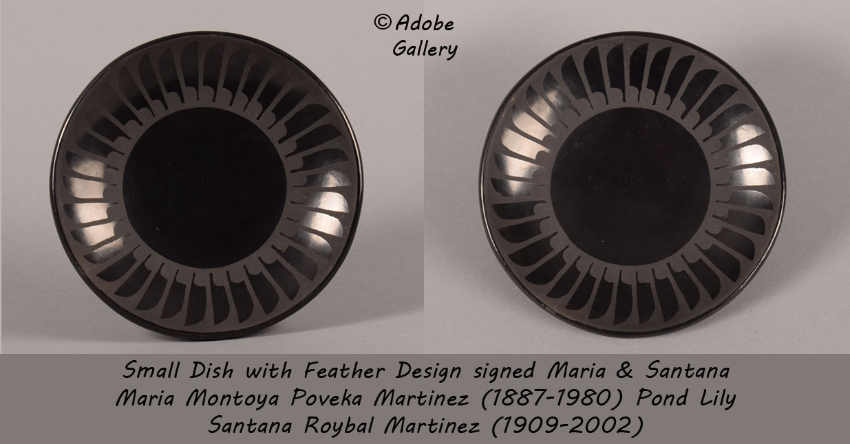 Provenance: this San Ildefonso Small Dish with Feather Design signed Maria & Santana is from the collection of a client of Adobe Gallery