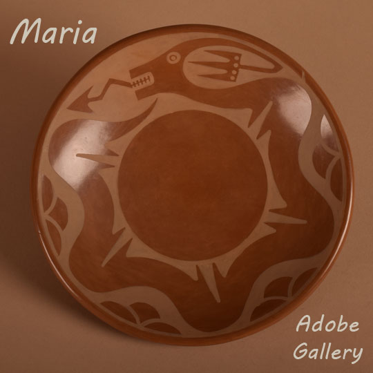 San Ildefonso Pueblo Redware Avanyu Pottery Plate by Maria Martinez and Popovi Da [SOLD]