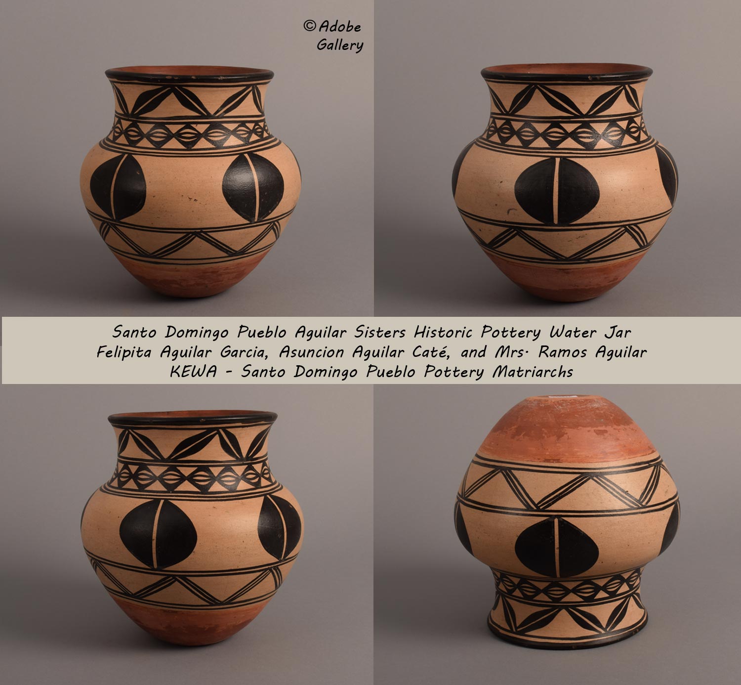 Provenance: This Santo Domingo Pueblo Aguilar Sisters Historic Pottery Water Jar is from the collection of a client of Adobe Gallery.