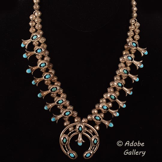 Provenance: this Silver Shadowbox Squash Blossom Turquoise Necklace is from a client of Adobe Gallery