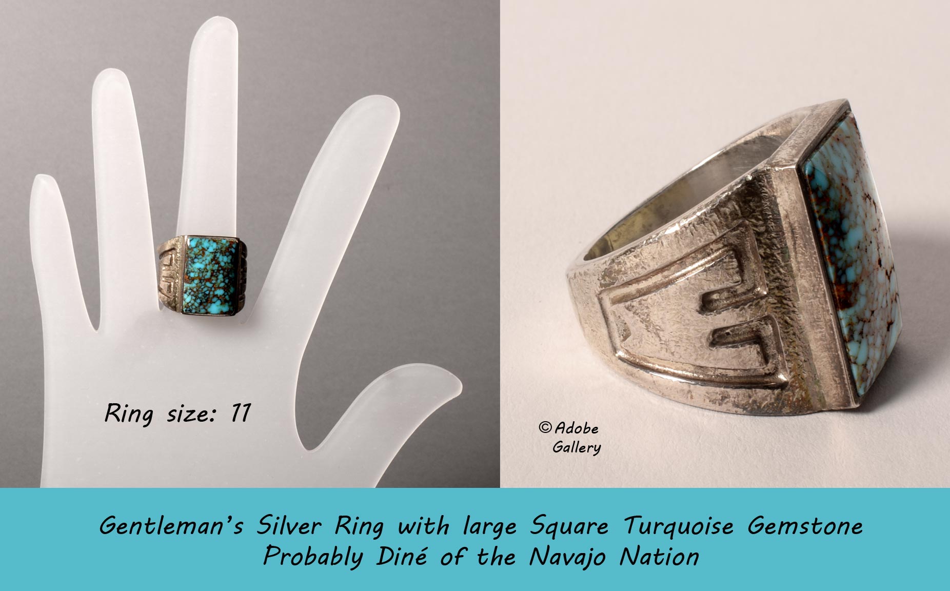 Provenance: this Gentleman's Silver Ring with large Square Turquoise Gemstone is from the gentleman to whom we sold this in 2018.